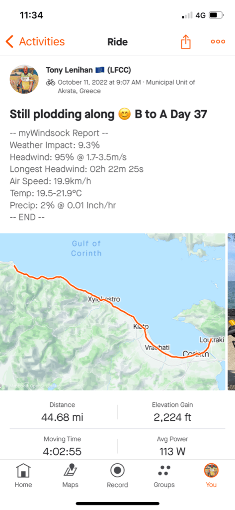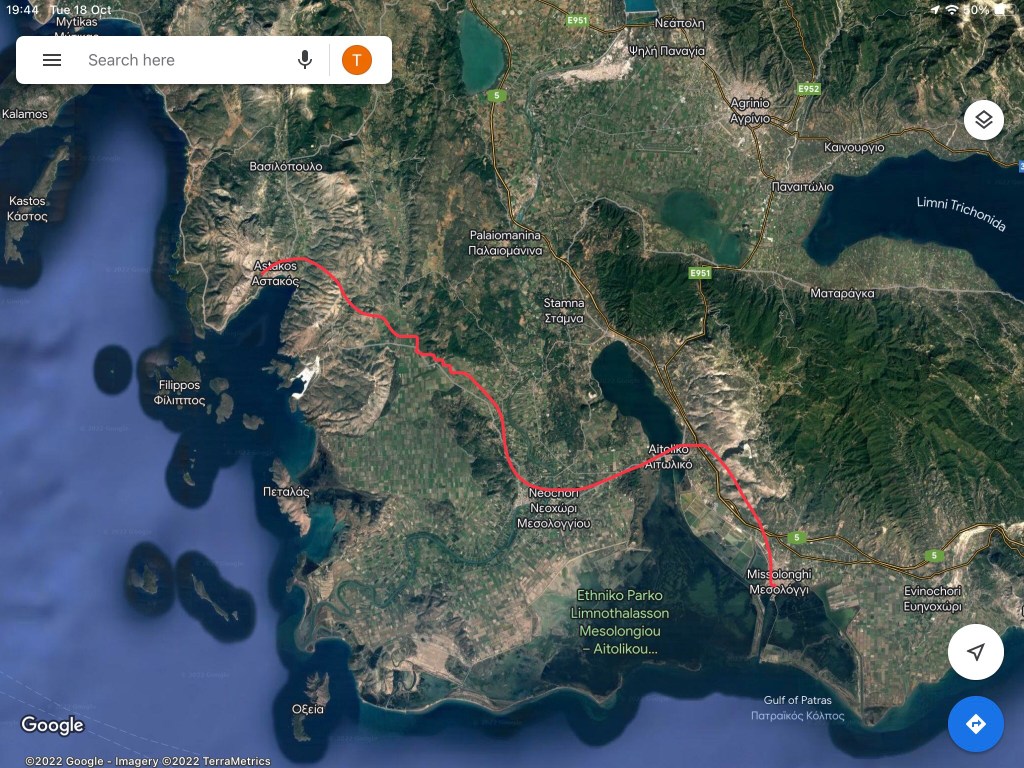 I’d got a shorter day planned today, about 20 miles along the coast to Akrata where I’d spotted some availability at the only hotel in town.
