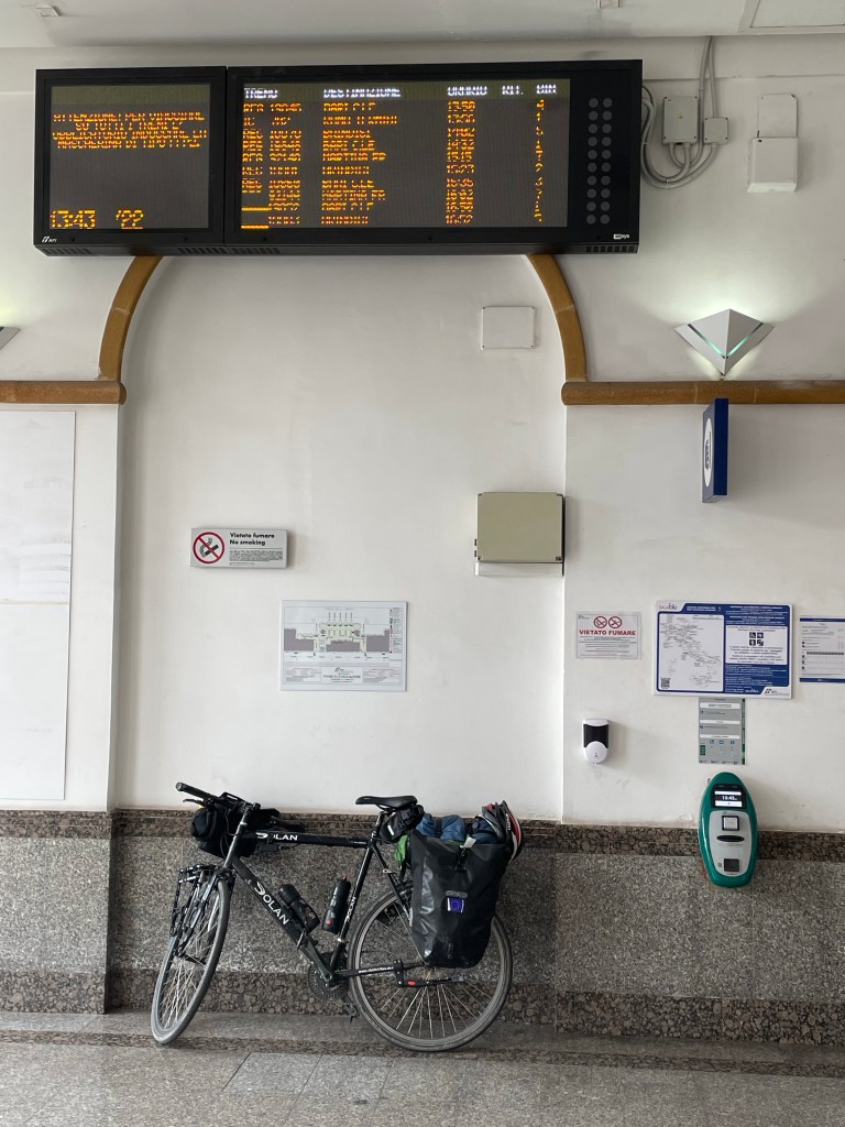 I’ve spoken before about accessibility on the Italian train network and today, bafflingly, was just the same. No lifts and a big gap between train and platform. The train did have a dedicated bike space (hooray) accessed by three big steps (boo). More an observation than a criticism but it certainly seems to make life (for some people anyway) unnecessarily tricky