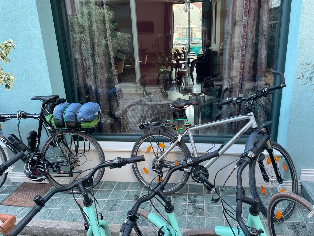 What an idiot. Neither of us made any mention of it as I checked in, with the usual questions about where I could store my bike. “Have you cycled here today “ she asked politely, “oh yes” I proudly replied, “I’m on the way to Athens “. She looked up and asked politely “from where?” which was my cue to puff my salty chest out and nonchalantly drop “ from England”