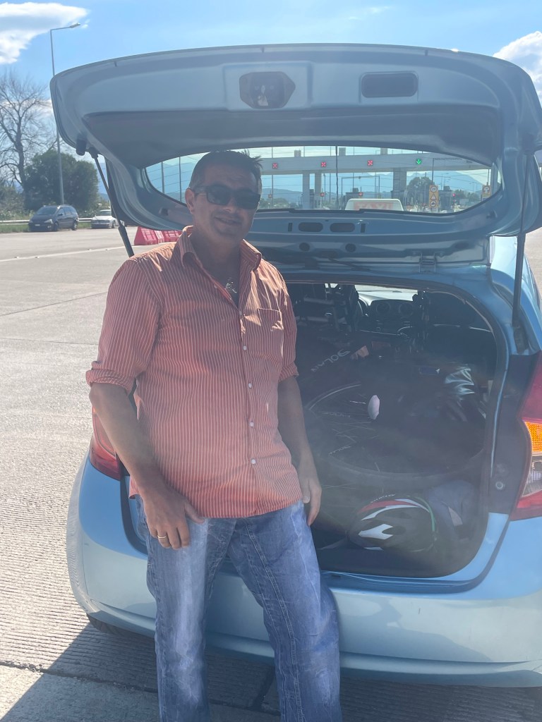 It was an absurdly short drive through in the end, and in typical Greek fashion, there was a turning space before the exit toll booths so my taxi friend could just spin round and go back without further cost. I unloaded the bike and he refused to take any payment, saying “sorry sorry ,Government bad,Greek people good”. Which they certainly were