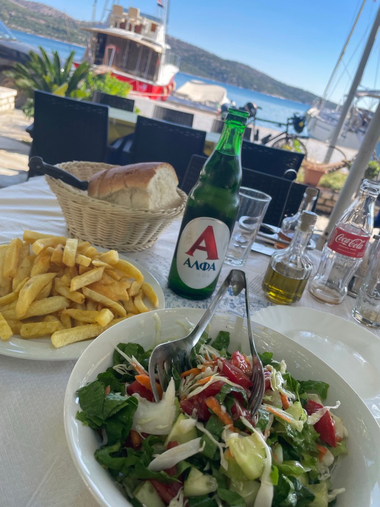 A stroke of luck found me a cheap and cheerful hotel (Hotel Pegasus) literally about five minutes away, Vonitsa (or more accurately I suppose, Vomitsa 😊) being a seaside place . The kindly old gent on reception patiently and unhurriedly explained everything to me while I was internally reliving that scene from the film Bridesmaids and willing him to Just. Hurry. Up. If you know, you know .