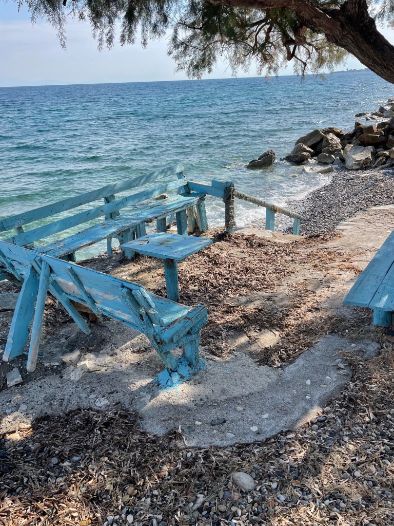 Once on Salamina it was about seven miles round to Selinia on the other side . I was intending to catch my final ferry of the trip from here tomorrow, over to Piraeus, the port of Athens. The “port” that I’d seen on the map was no more than a short slim jetty, and there was no sign of ferry activity.