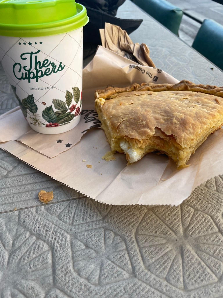 First things first. Breakfast was a feta and potato pie,still warm and really delicious and worthy of a photo for sure ….