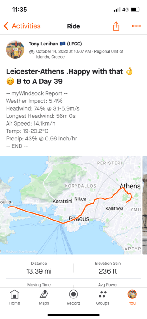 The bike had been impeccable and I felt a bit sad to be packing it away. But now I knew it was safely boxed up I could get on and book a flight, and by the power of EasyJet I’d be at Stansted tomorrow evening . Time now for a whistle stop tour of Athens, on two feet rather than two wheels 😊