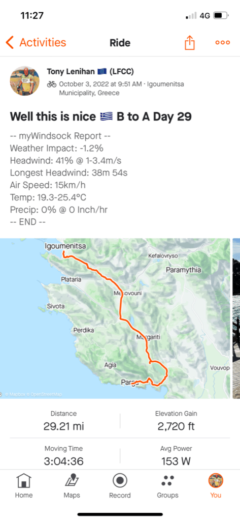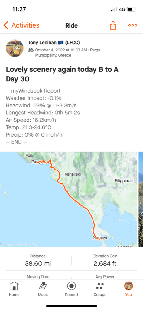 But before the why came the what. My research had identified todays end point of Preveza as a “yachtie” harbour town about 40 miles down the coast . That meant plentiful accommodation and places to refuel so that was that -planning complete 😊