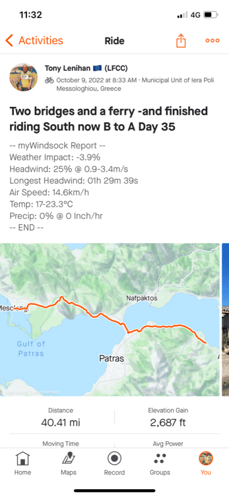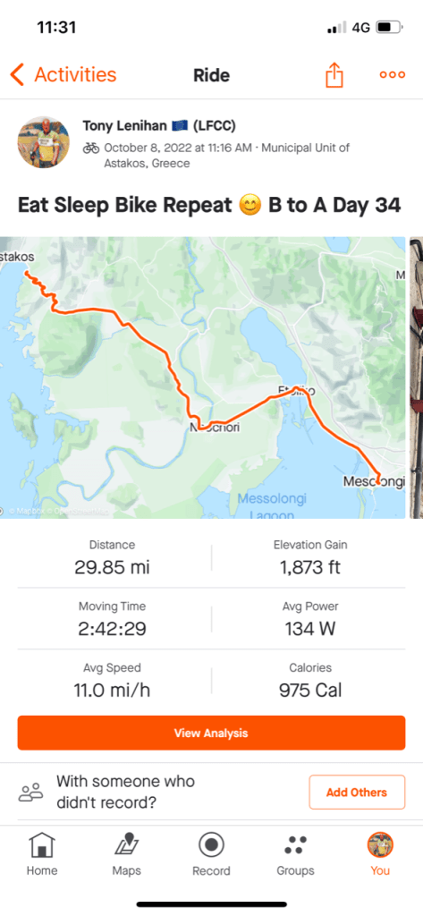 I was feeling a bit weird. After all this time away, today was to be my last long day in the saddle as I positioned myself for finishing tomorrow with a ferry and short ride into Athens .
