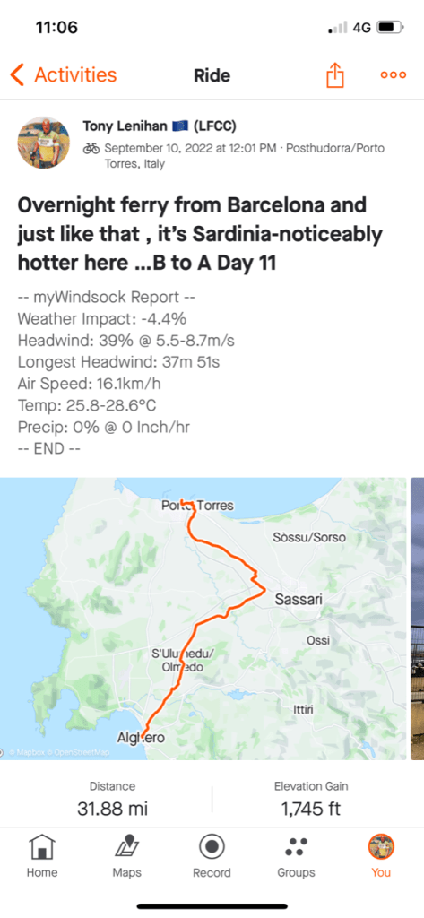 The next day was another ferry. I’ll never not be excited by cycling onto a ferry, (even a Grimaldi Lines ferry 😊) and today was no exception. Foreign ports have barely any signs. Or directions. Or anything to help you know where to go. The whole operation is designed around the principle of “follow the person in front of you” and it actually works really well 😊