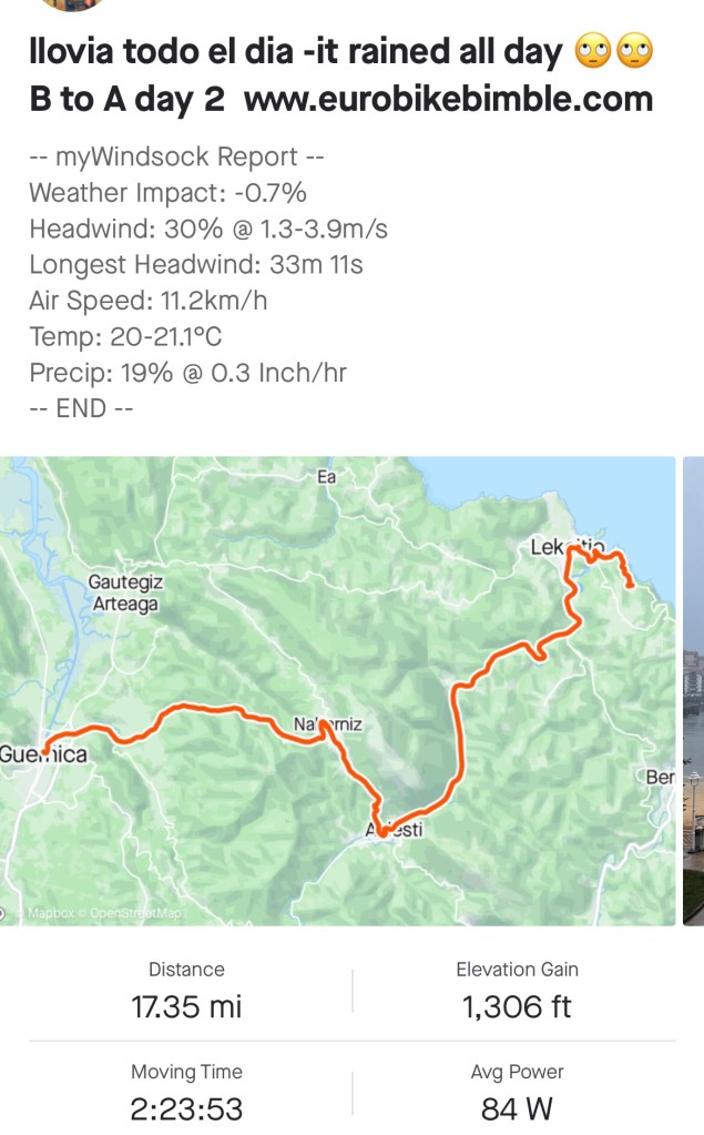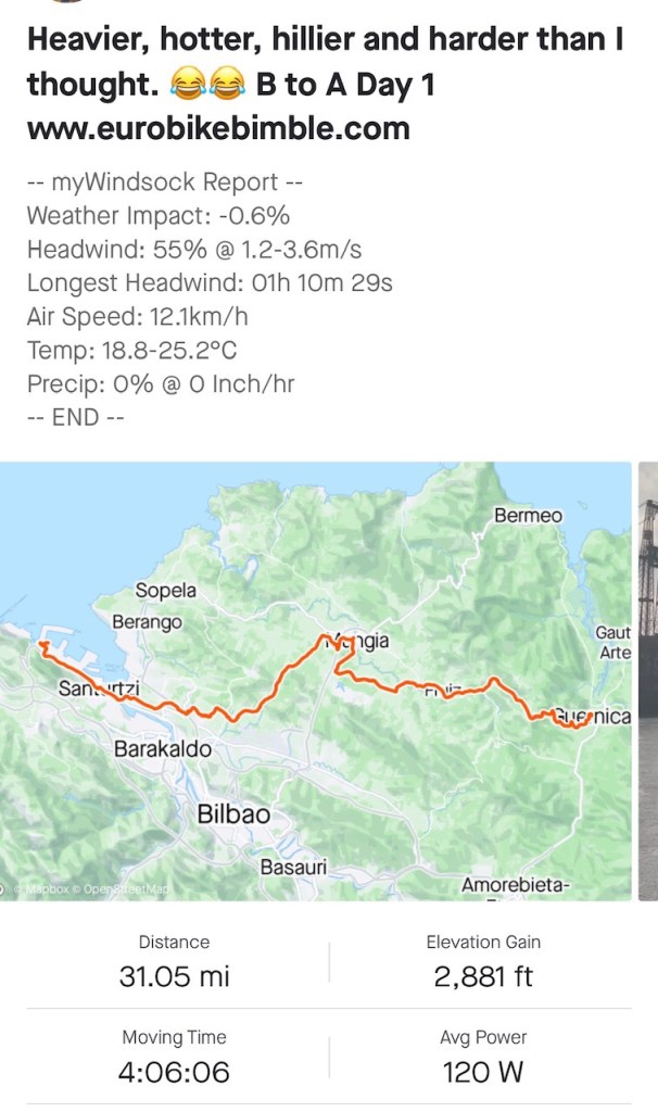 It was at this point I realised my Garmin was malfunctioning-although I’d been cycling hard all day and had covered at least sixty miles it was telling me I’d covered less than twenty! Hmm ….sadly the malfunction was all mine and I decided to head about ten miles to Guernica and call it a day .
