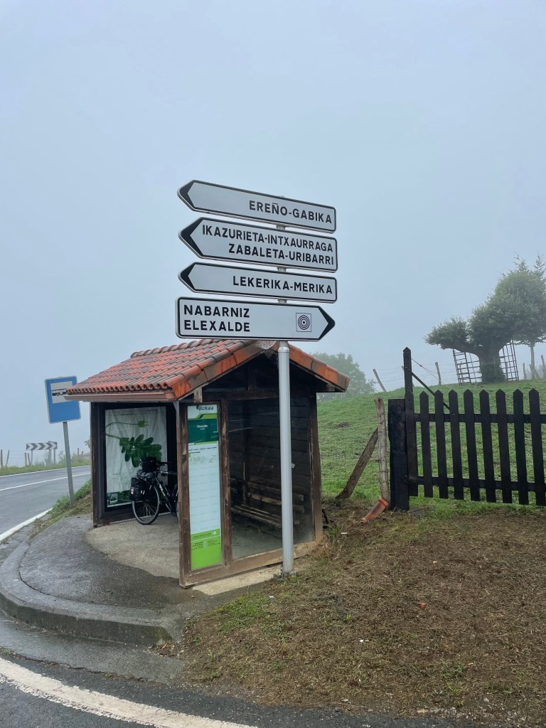 Maybe he was actually referring to the bus shelter (the word “shelter” being the key here) I was pathetically grateful to come across when I did eventually make it to the top near the tiny village of Nabarniz
